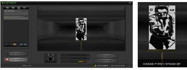 Military officers of the 21st century find themselves in more peace keeping environments. Gone are the days of just firing on full automatic, each shot they fire is analysed not only internally but also by the inevitable world journalists that are present at every conflict. Officers are subject to many impossible situations but will find their decisions investigated in a court, at a later date. The InterVid interface, as like all the other Viper screens, is simple to use which allows the instructor to monitör the student. A look back camera plays an after action review to not only show if the student shot any rounds but will also show how they took cover, etc.